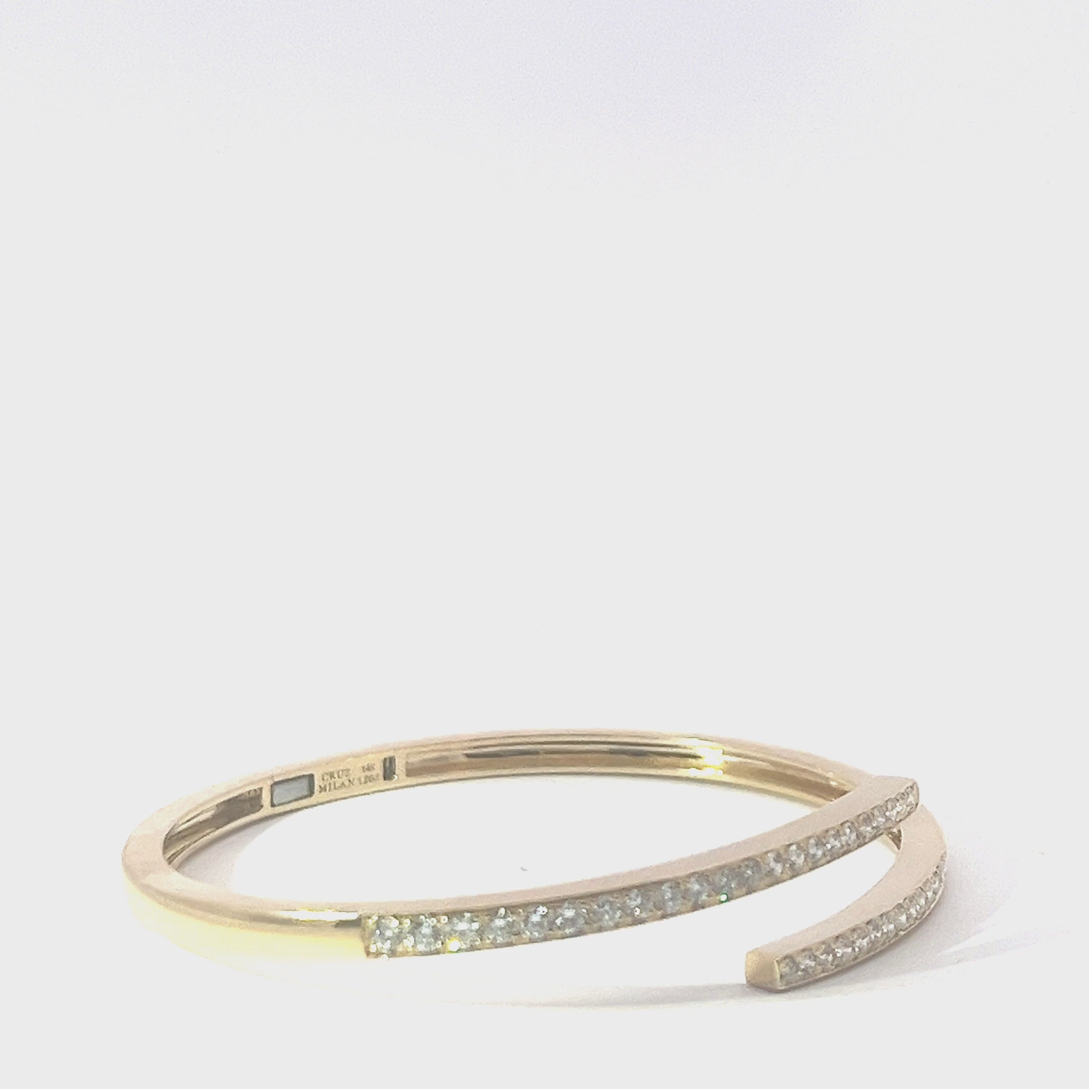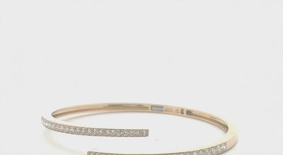Sculpted in warm 14K gold and traced with 1.52 carats of E–F color diamonds, the Aura Bangle brings a soft, seductive glow to the wrist. Its open silhouette curves naturally at 6.5 inches, catching light with every move—quiet, refined, and unmistakably luxurious.